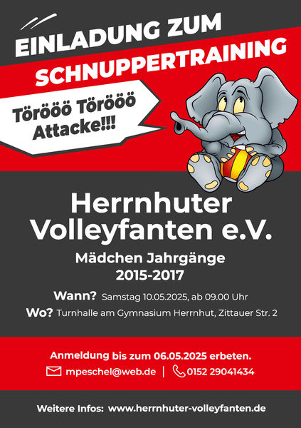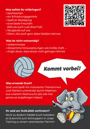 Keine Angst wir beißen nicht und alles beginnt mit einem unverbindlichen "Schnuppermonat". Erst danach stellt sich die Frage: "Weitermachen und Volleyfant werden?"